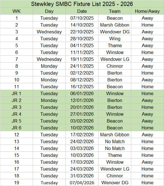Vale Friendly League Fixtures List 2025 / 2026