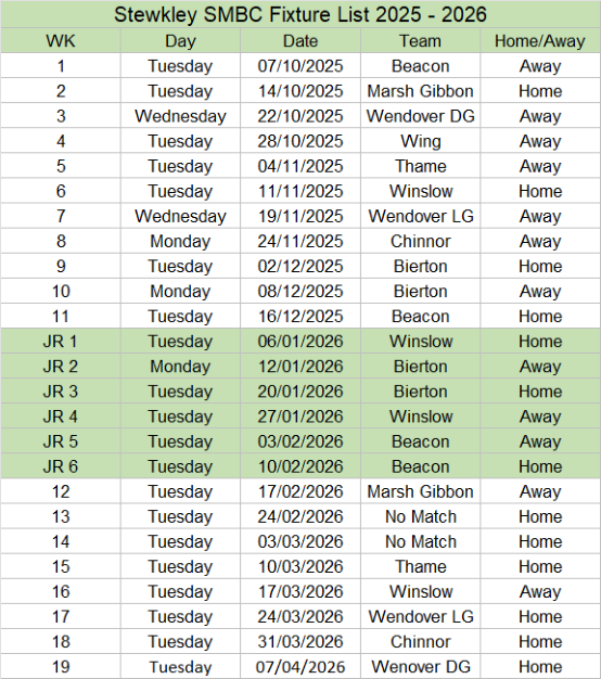 Vale Friendly League Fixtures List 2025 / 2026